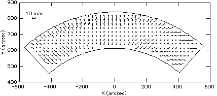 the fit are decreased from as much as 50 mas in the x and 10 mas in y if
