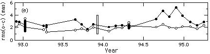 estimated for each epoch of calibration data. (d) 1992 through 1994 data